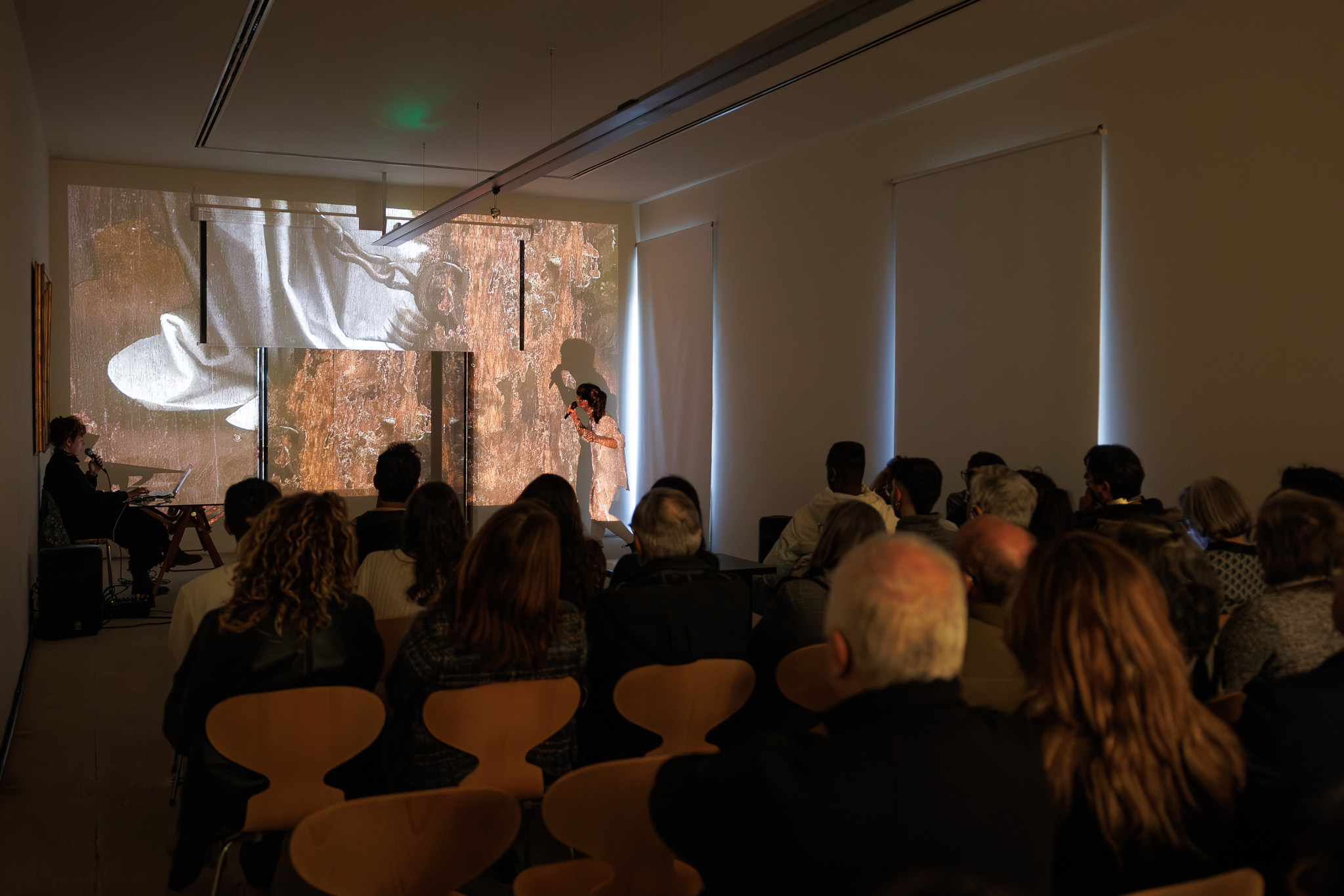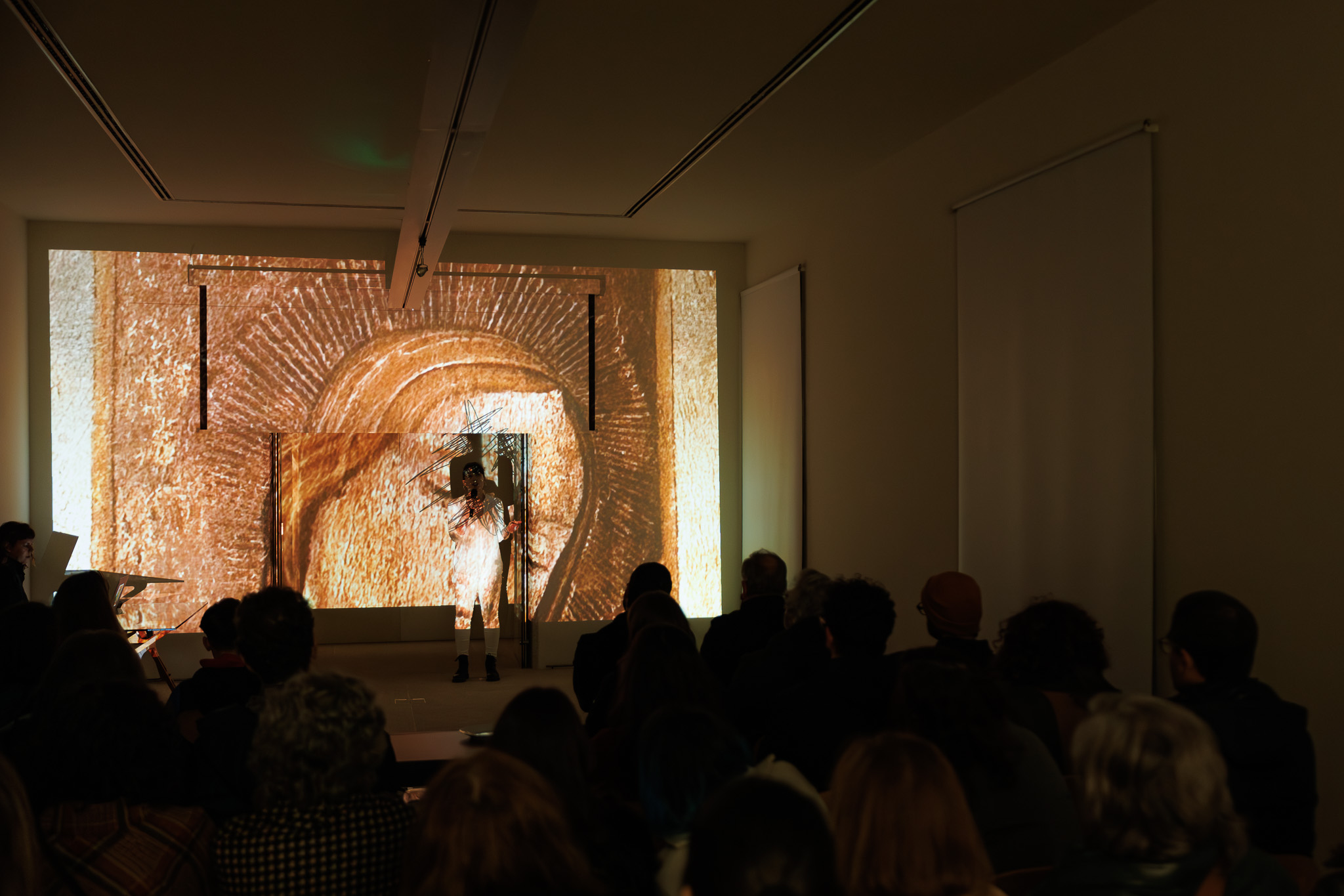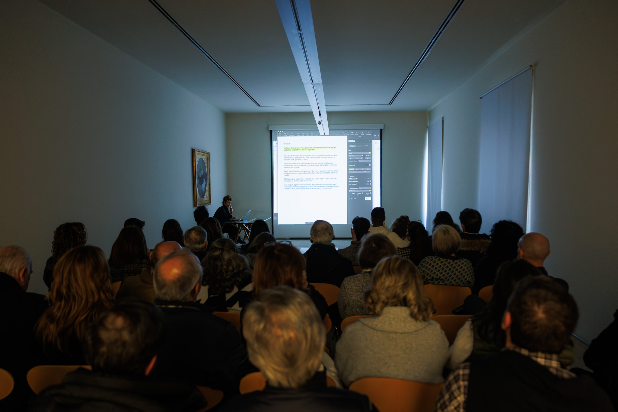 Escavando imaginários e identidades estéticas diversas, exploramos o “processo” e o que habita nesse espaço intermédio, a prática artística em contraponto ao objeto acabado. Recorrendo ao videomapping e à performance dos corpos, reimaginamos o processo do artista, mergulhando em espaços misteriosos, sagrados e liminares para tentar uma ressignificação das obras deste museu.